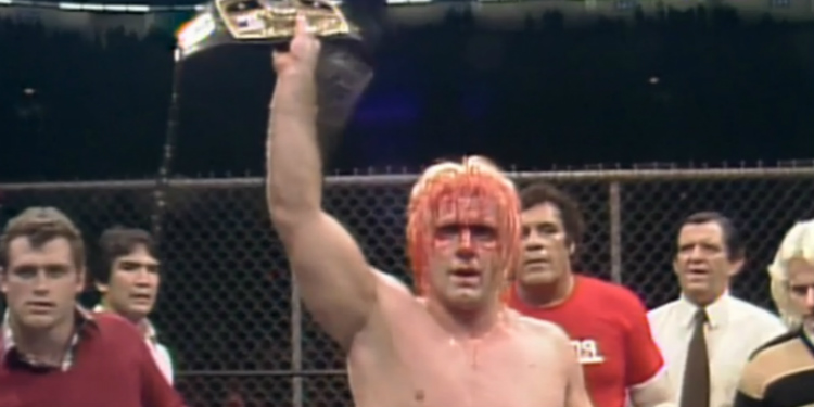 No niin. Sitten se illan varsinainen Main Event, jota oli hehkutettu koko tapahtuman ajan lukuisissa haastatteluissa, selostajien puheissa ja ties missä. Ennen tätä matsia kuultiin vielä USA:n kansallislaulu. Oli aika puolustaa (NWA:n näkökulmasta) bisneksen tärkeintä mestaruutta: NWA World Heavyweight -vyötä. Mestari oli vihattu ja ylimielinen konkari, 7-kertainen päämestari Harley Race. Race oli aloittanut uransa 1960-luvulla, ja todellinen tähti hänestä oli tullut 1970-luvun alussa, kun hän oli siirtynyt eteläisiin promootioihin ja voittanut ensimmäisen NWA World Heavyweight -mestaruutensa Dory Funk Jr:ltä. Vastaansa hän sai nuoremman, uransa varsinaisessa nousuvaiheessa olevan tulevaisuuden legendan Ric Flairin. Flairin ura oli alkanut 1970-luvun alussa, ja kun hän oli vuosikymmenen puolivälissä siirtynyt JCP:hen, hänen huikea karismansa alkoi olla niin näkyvää, että promoottori Jim Crockett päätti tehdä Flairista seuraavan supertähden. Flairista oli tullut jo ”Nature Boy” (päihitettyään ”Original Nature Boy” Buddy Rogersin), ja hän oli jo voittanut NWA World Heavyweight -mestaruuden vuonna 1981. Flair hävisi päämestaruuden Racelle kesäkuussa ’83, ja tuon jälkeen Harley Race julisti 25 000 dollarin palkkion sille, joka saisi Flairin kokonana ulos bisneksestä. Dick Slater ja Bob Orton Jr. tarttuivat tarjoukseen ja teloivat Flairin niin pahasti, että tämä julisti eläköityvänsä. Race antoi rahat kaksikolle, mutta pian paljastui, että kuvio olikin vain Flairin kusetusta. Flair palasi JCP:hen takaisin, hyökkäsi heelien kimppuun ja vaati uusintaottelua. Race yritti viimeiseen asti kieltäytyä painimasta Flairia vastaan, mutta lopulta tämä ottelu buukattiin Starrcadeen. Stipulaatioksi lisättiin Steel Cage Match, ettei kukaan voisi sekaantua otteluun. Tuomariksi määrättiin wrestling-legenda Gene Kiniski.