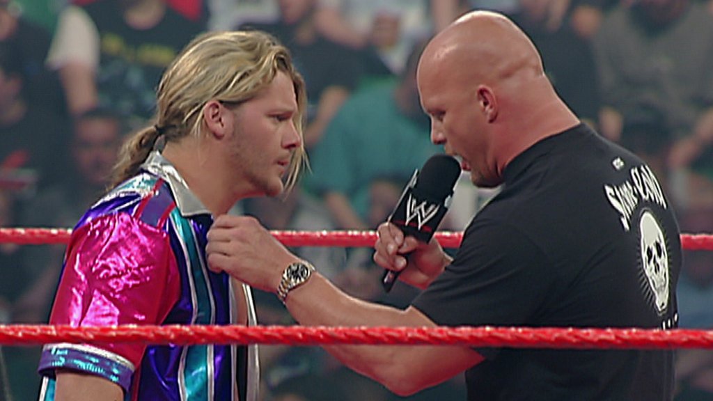 Jostain syystä Chris Jericholle ei ollut buukattu tähän tapahtumaan ollenkaan ottelua, vaan sen sijaan hän sai kunnian vetää historian ensimmäisen ppv-tason Highlight Reelin. Jericho oli siis jokunen aika sitten alkanut vetää Raw’ssa viikottaista Piper’s Pit -tyylistä talk show -segmenttiään, jossa fokus tuntui olevan usein enemmän Jerichon itsekehussa kuin vieraiden kanssa juttelussa. Highlight Reelin ajan kehä oli koristeltu punaisella matolla, hienoilla taideteoksilla ja ennen kaikkea legendaarisella Jeritron 5000 -screenillä. Olisin voinut vielä joten kuten hyväksyä tämän anglen, jos tässä olisi jotenkin jatkettu Jerichon ja Goldbergin feudia, joka oli selostajien mukana kuumimmillaan mutta josta ppv-katsojilla ei tähän mennessä ollut mitään hajua. Missä Goldberg taas edes oli? Alan kyllästyä koko ’Bergiin tämän näkymättömyyden takia. No, tällä kertaa Jerichon vieraana oli Eric Bischoff, jonka kanssa Y2J lätisi paskaa. Ihan viihdyttävä anglehan tämä kieltämättä oli, koska Jericho oli erinomainen mikissä, eikä Bischoffkaan huono hommassaan ollut. Kuvion täydensi Bischoffin co-GM -kaveri Steve Austin, joka saapui kehään ilmoittamaan muuttaneensa Main Eventin stipulaation Singles Matchista Street Fightiksi. Lopuksi Austin pieksi Jerichon ja Bischoffin, mikä ei minusta ollut mitenkään ongelma ”Jerichon pushin” tai muun kannalta, mutta ei se nyt kovin tarpeellistakaan ollut. Nautin tästä anglesta ihan vain puhtaasti miesten mikkitaitojen takia. Buukkauksellisesti tämä oli täysin turha.