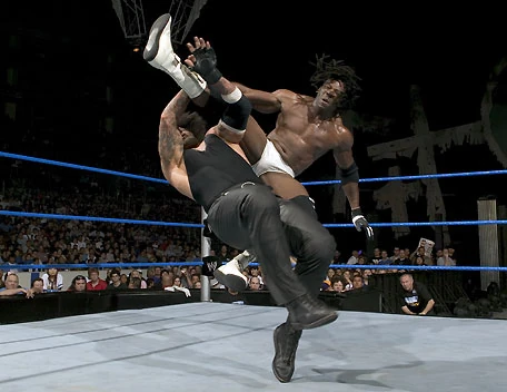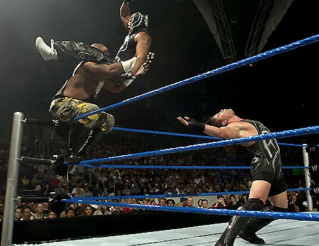 Noniin, pitkästä aikaa kunnon joukkuepainia Smackdownissa ja yleisesti WWE:ssä! Toistaiseksi tämän vuoden puolella ei ole taidettu nähdä WWE:n ppv:issä yhtään joukkueottelua, joka olisi säväyttänyt jotenkin mainittavasti. Joukkuedivareiden tilanne oli ollut jo hyvän aikaa laskusuhdanteinen, ja tuo laskusuhdanne ei ihan hetkeen olisi päättymässä. Tilannetta ei helpottanut se, että jostain syystä nämäkään joukkueet eivät olleet SD:n joukkuemestaruusdivarissa edes mukana. Sen sijaan RVD, Mysterio ja Dudleyt vetivät muuten vain kokonaisuutena oikein mainiosti toimivan ja vieläpä yllättävän pitkän joukkueottelun, joka ei puuduttanut hetkeäkään edes heelien pitkän hallintavaiheen aikana. Vaikka Dudleyiden dominointia olikin kiva katsella, silti ottelun tähtiä olivat kiistatta Mysterio ja RVD, joista Mysterio esitteli taas käsittämättömiä high flying -liikkeitä ja RVD täräytti perhanan näyttäviä potkuja. Van Dam tuntui olevan Mysterion kanssa työskennellessään paremmassa iskussa kuin pitkiin aikoihin. Yksi ottelun hienoimmista hetkistä oli, kun RVD katapulttasi Mysterion yläköydelle, josta Mysterio tempaisi Hurracanranan Bubba Raylle. Tämä oli oppikirjamaisen hieno joukkuekamppailu, lisää näitä.