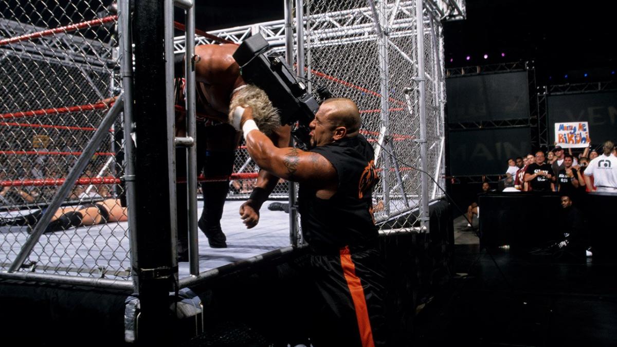 Eiiiii! Kuten kuvasta näkyy, Val Venis oli leikannut hulmuavan pitkät ja karismaattiset hiuksensa! Perhana. Tämähän alkoi kaiketi olla sitä aikaa, kun dirt sheeteissä liikkui juttua siitä, kuinka Triple H oli pakottanut joitakin midcard-painijoita leikkaamaan hiuksensa, koska hän halusi pitää pitkät hiukset omana juttunaan. Ensin Eddie, nyt Venis. Ehkä jutussa on perää… Mutta se hiuksista. Val Venis oli siis noussut paluunsa jälkeen uudestaan mestaruuskuvioihin, kun hän oli onnistunut voittamaan pari viikkoa ennen ppv:tä IC-mestaruuden Rikishiltä sen jälkeen, kun Tazz oli sekaantunut otteluun ja auttanut Veniksen voittoon. Itse feud Rikishin ja Veniksen välillä oli ehtinyt jatkua jo parin kuukauden ajan, ja se oli saanut alkunsa siitä, kun Rikishi iski karsean Stink Facensa Veniksen managerille Trish Stratukselle. Miehet olivat ottaneet yhteen monesti, muun muassa King of the Ringissä, ja kenties nyt oli aika päättää koko feud. Teräshäkin ympäröivässä kehässä otettiin selvää siitä, kumpi näistä kahdesta todella ansaitsi IC-mestaruuden itselleen.